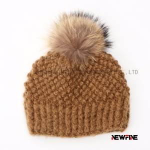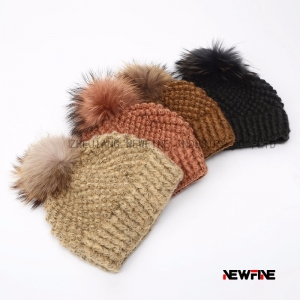 NEWFINE粗針織真貉子毛球柔軟保暖女士針織帽
