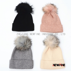 時(shí)尚保暖日常男女針織毛球帽子