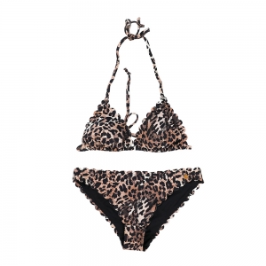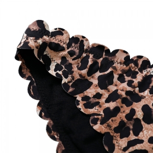 女士豹紋印花激光切割比基尼